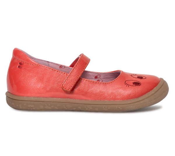 Couleur corail, cette ballerine vernie se pare de détails ludiques pour habiller le pied de votre petite fille. On craque pour les yeux brodés sur le bout de la chaussure qui ajoutent de la fantaisie au modèle. Ses renforts à l’avant et à l’arrière de la chaussure lui permet de participer sereinement à toutes ses activités. Doublure et semelle intérieure en cuir pour plus de confort.